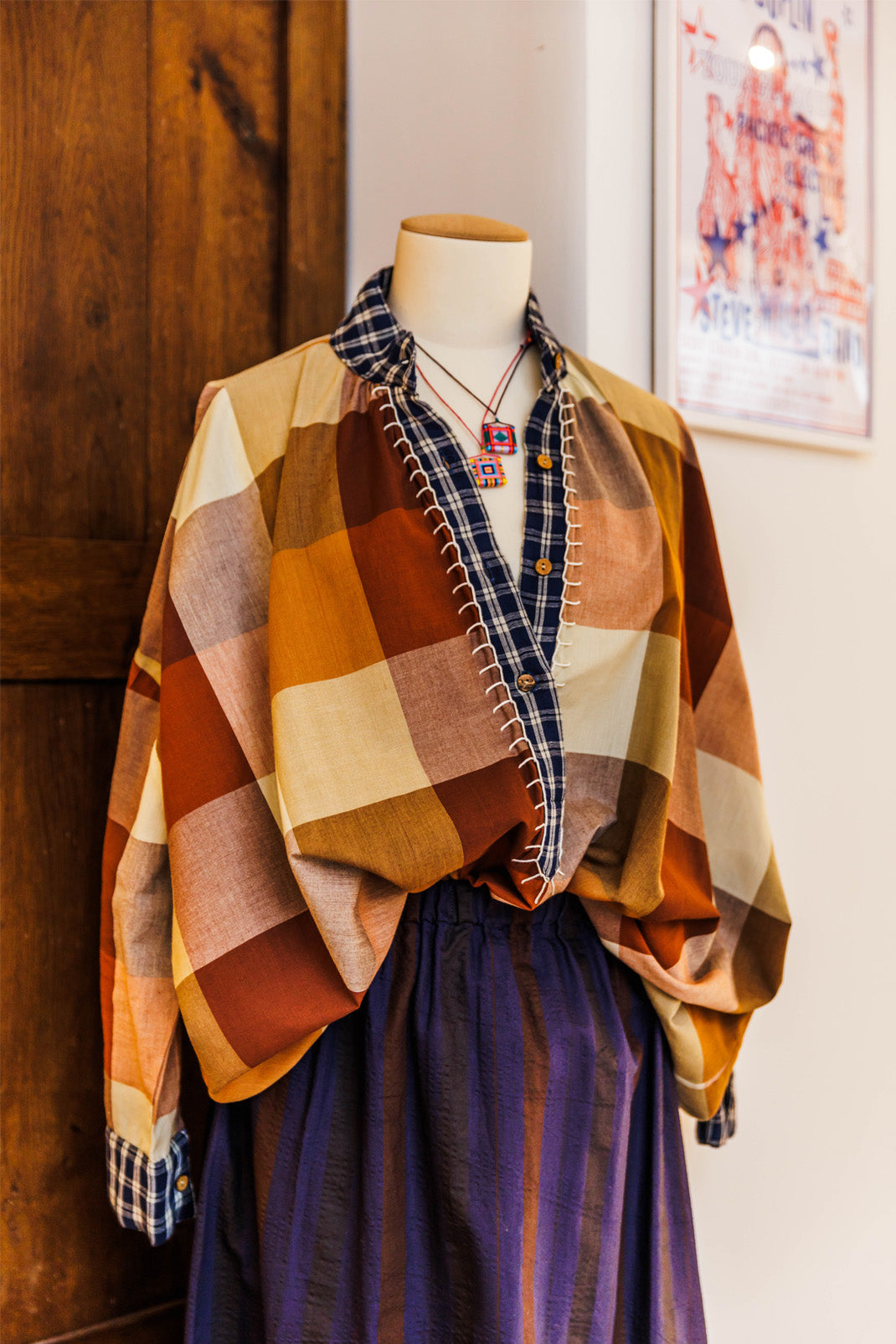 By meeting a tailor for men, Kumar, she has the idea of recovering her falls of colorful fabrics to create shirts, skirts, dresses and other unique pieces, since each assembly is different.