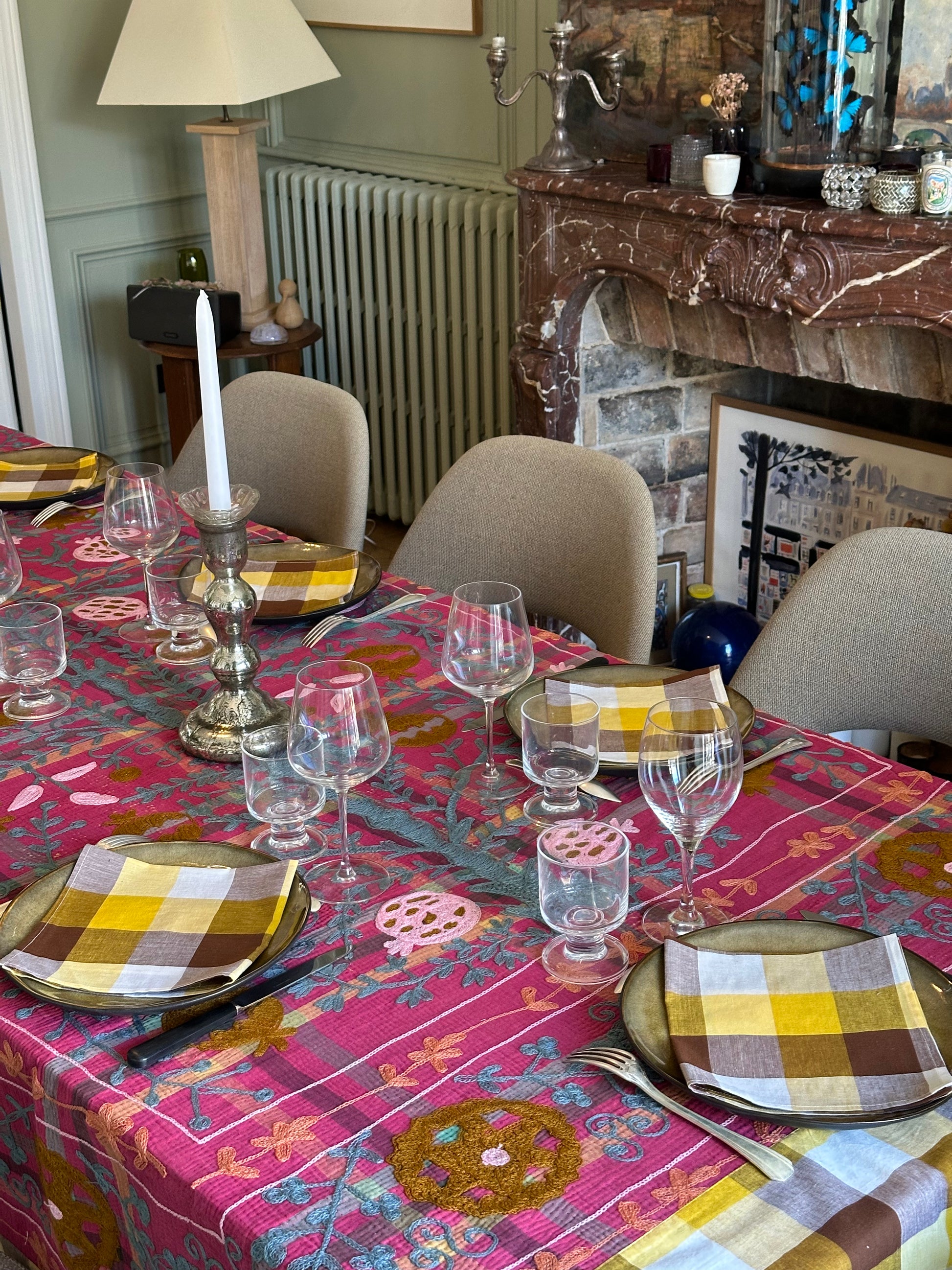 Each tablecloth is unique and shaped in Jaipur. It comes from artisanal work. It can present small embroidery irregularities and some signs of the time that have made all its charm.
