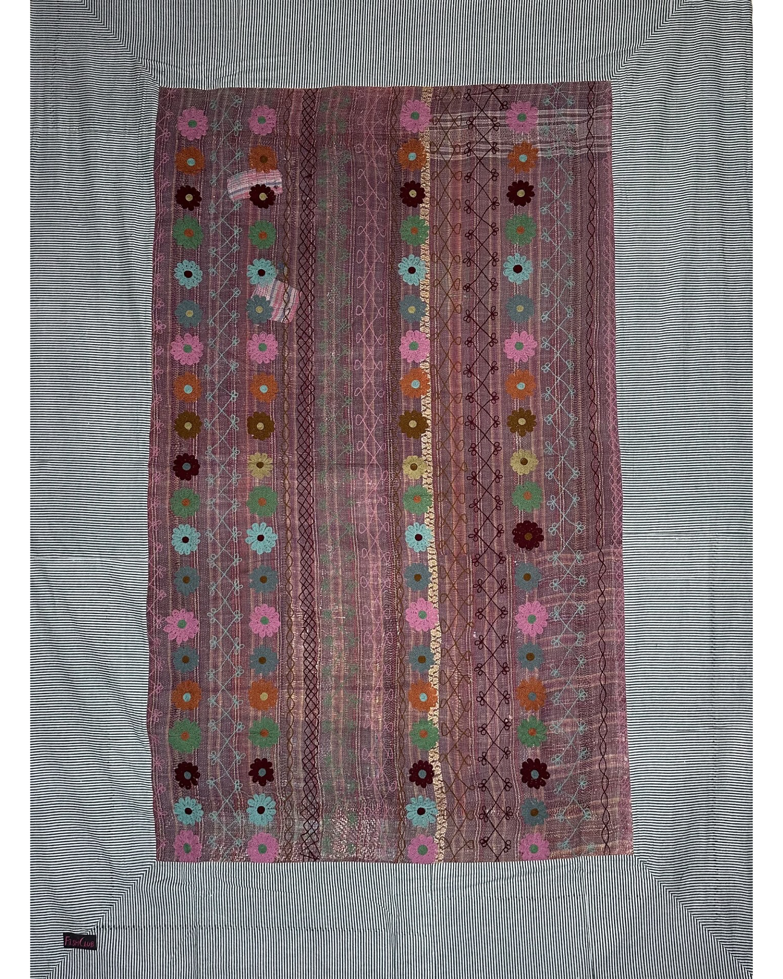 Exceptional ensemble composed of a large tablecloth + 8 matching towels associating Kantha Old Re-Brodé by hand with one of our iconic fabrics.