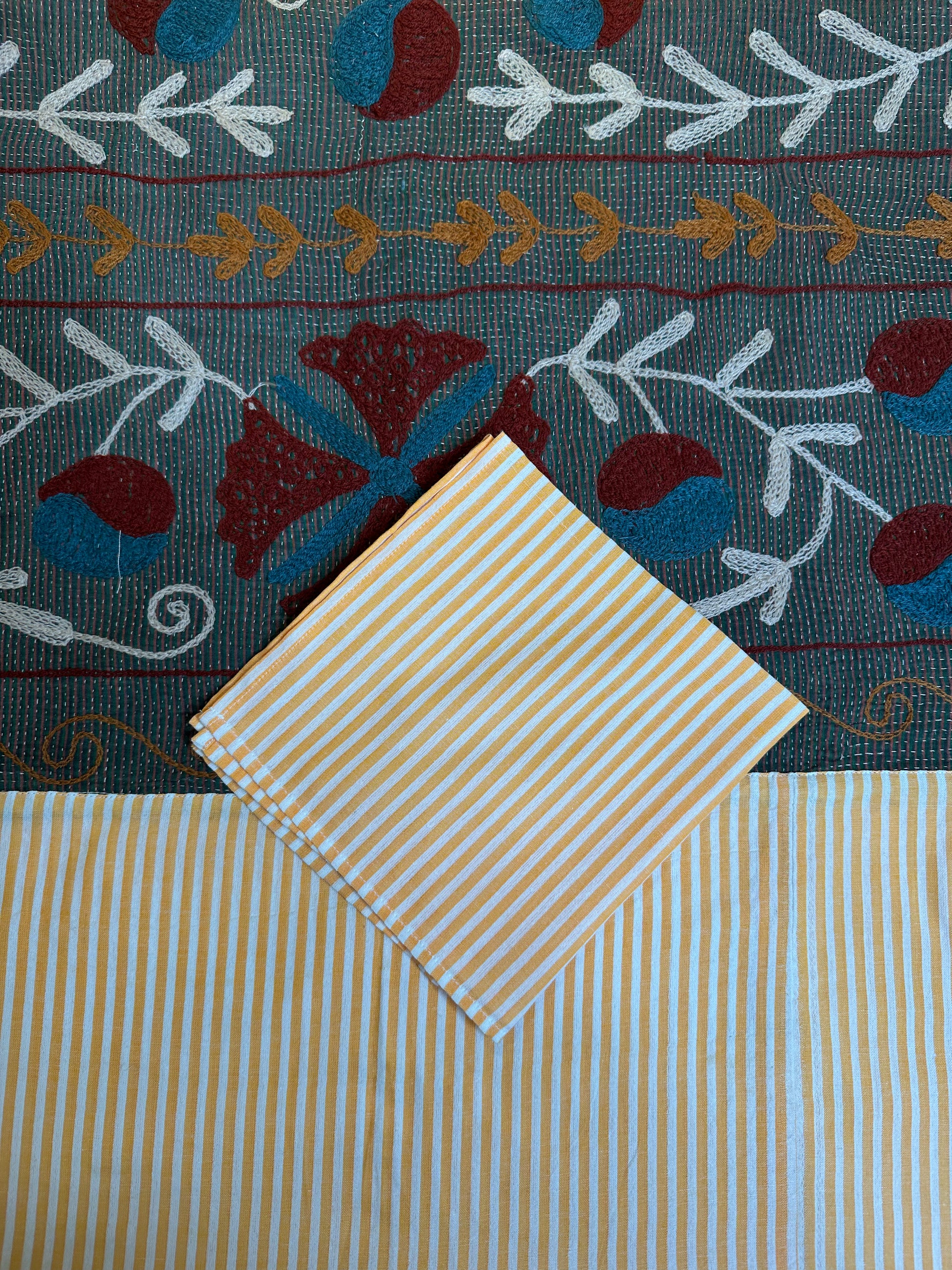 Exceptional ensemble composed of a large tablecloth + 8 matching towels associating Kantha Old Re-Brodé by hand with one of our iconic fabrics.