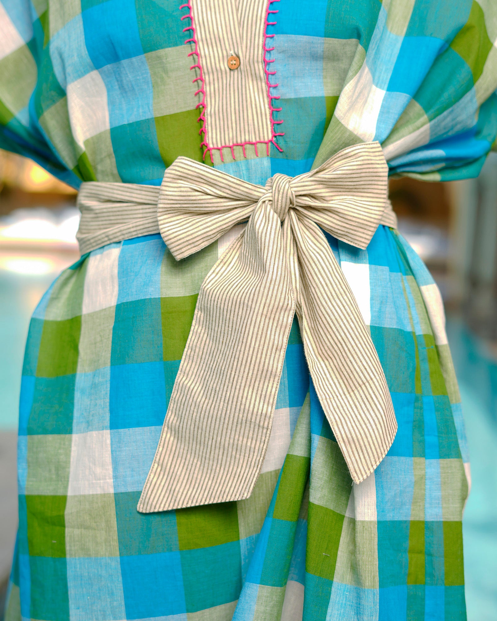 Oversized round neck 3/4 sleeve cotton dress, hand embroidered in Paris.