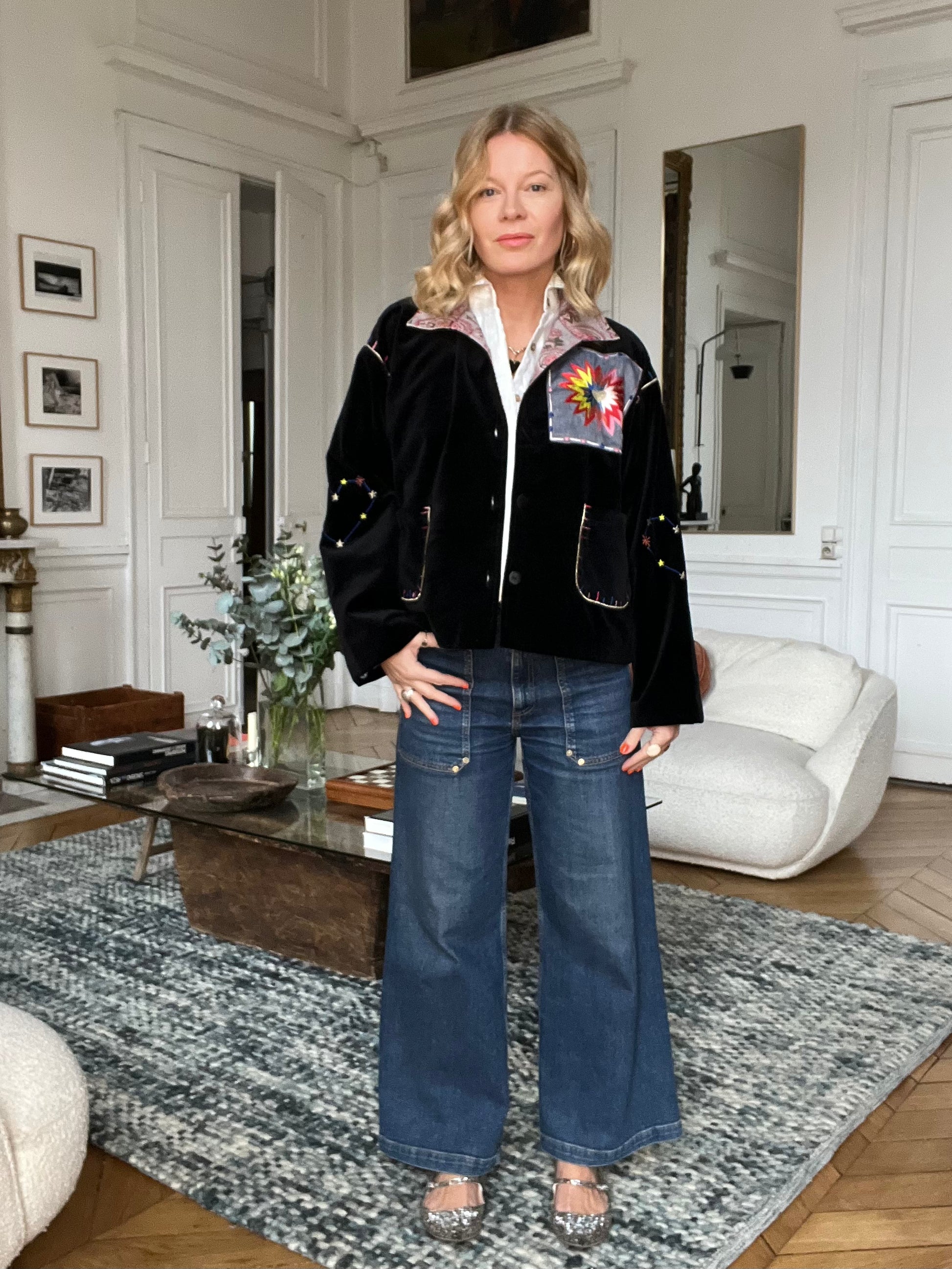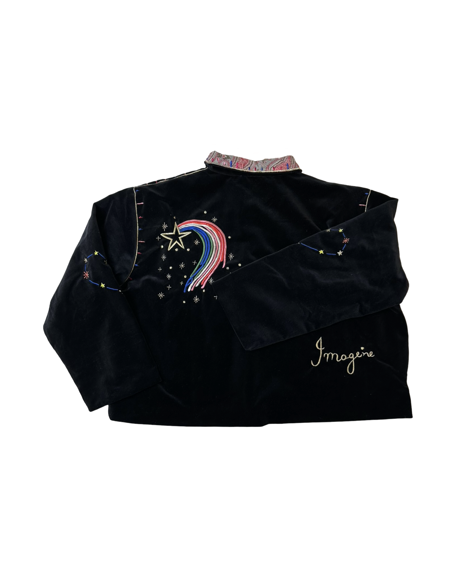 Imagine black velvet jacket, embroidered.