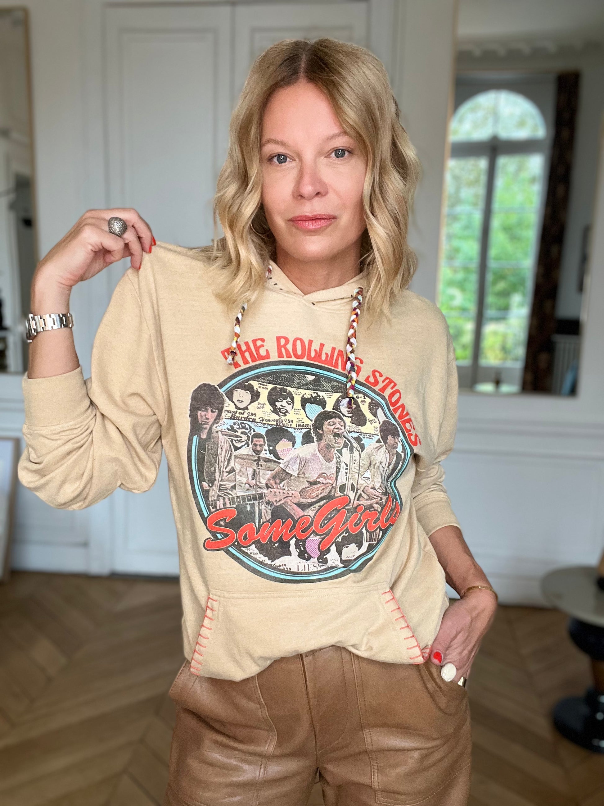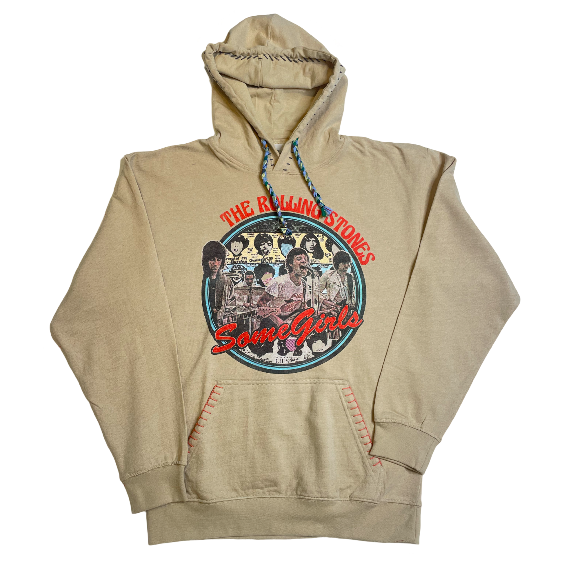 HOODIE COTON in cotton re-work and hand embroidered in Paris. The tightening link is braided with the tissue falls of our shirts.