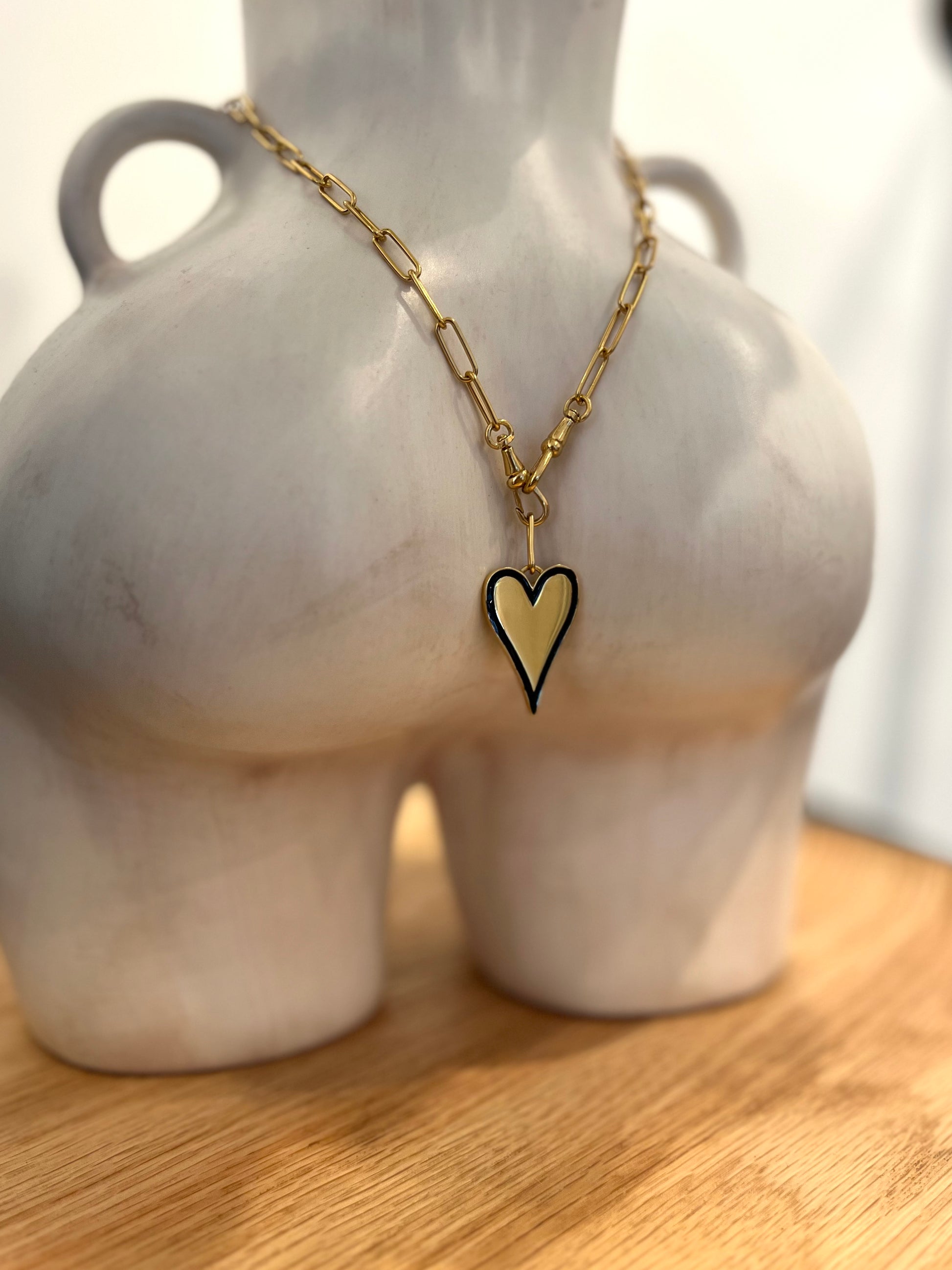 Vermeil necklace and reversible pendant in black and gold enamel