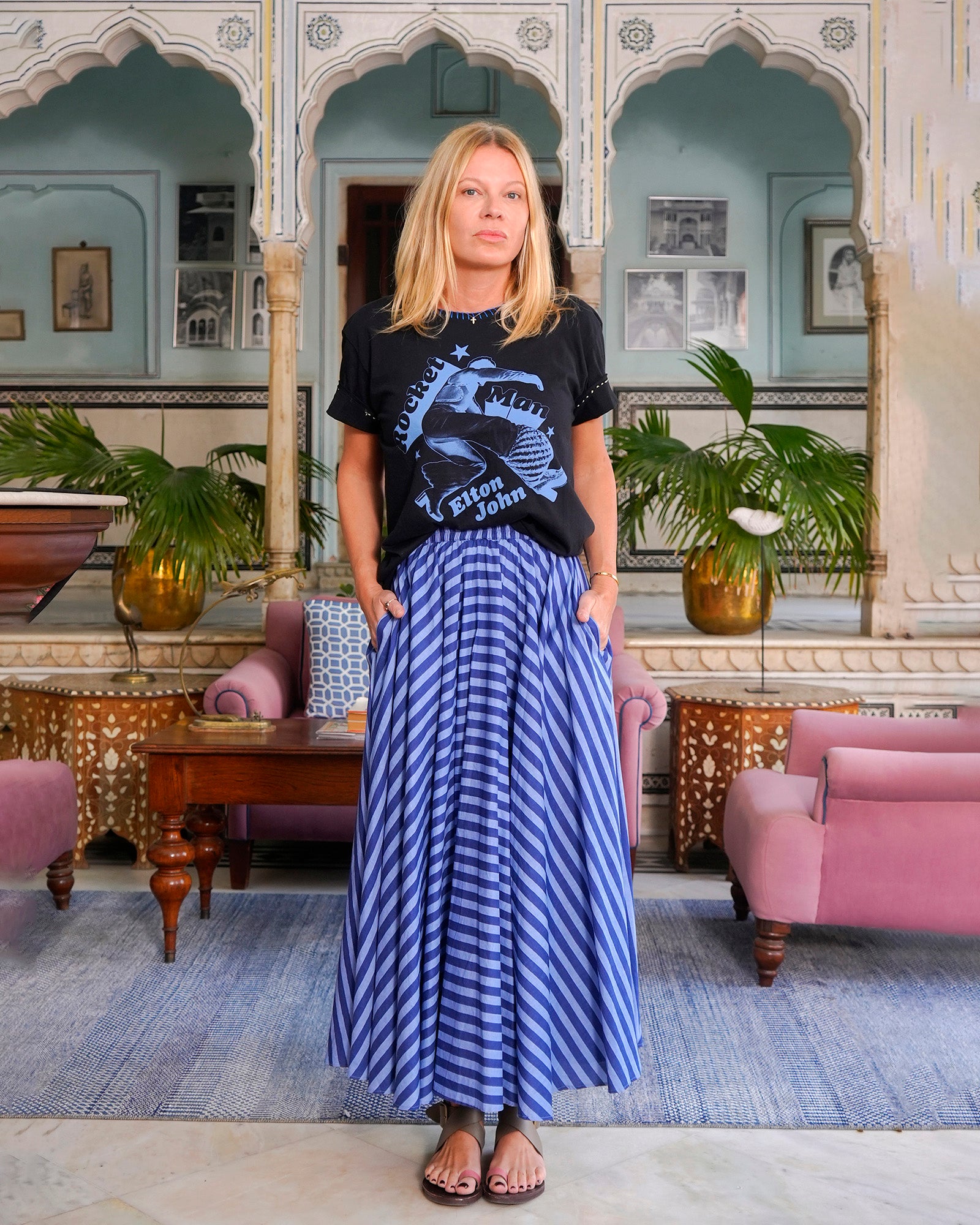 T-shirt in beige cotton jersey reworked and hand embroidered in Paris.