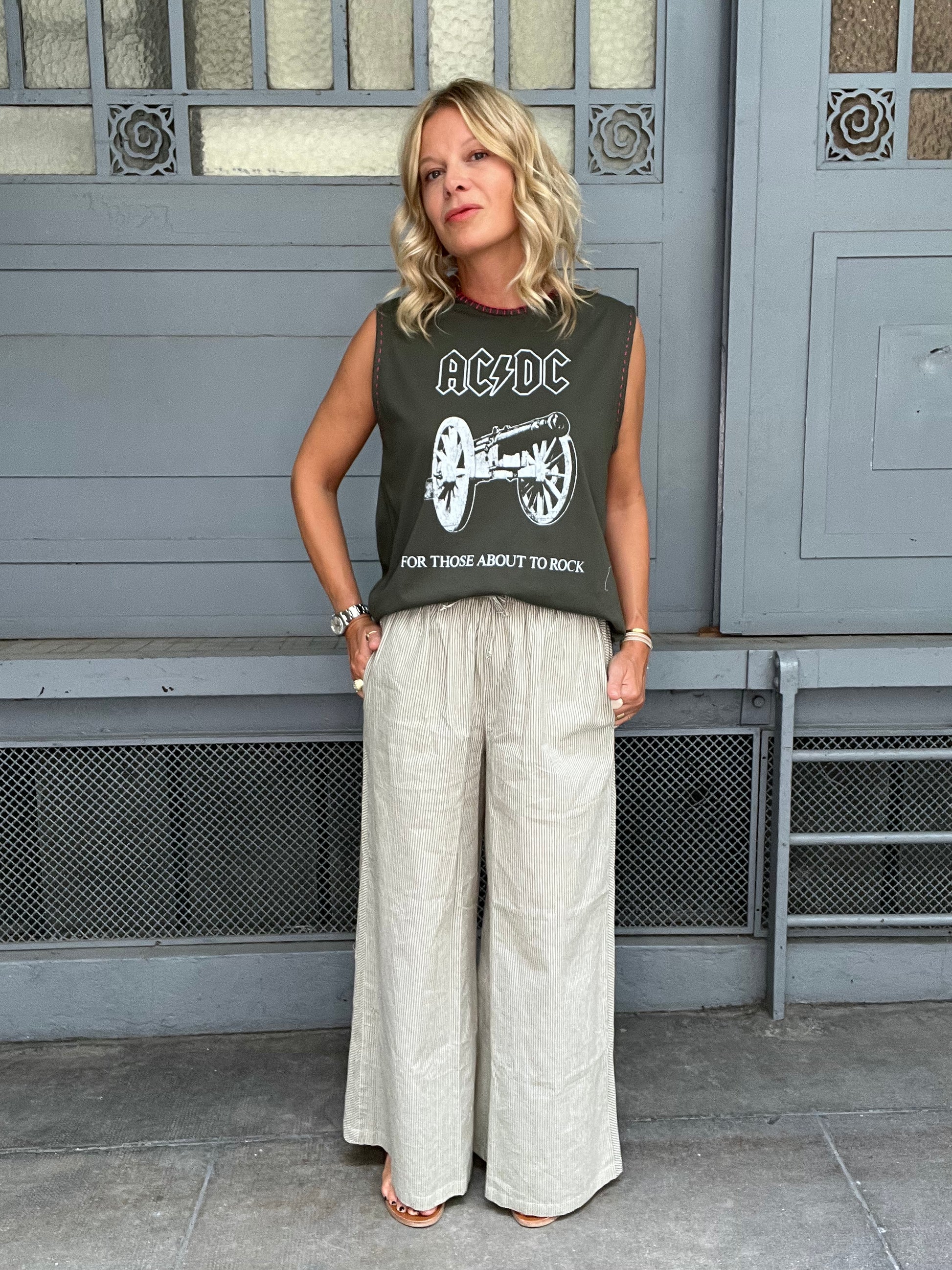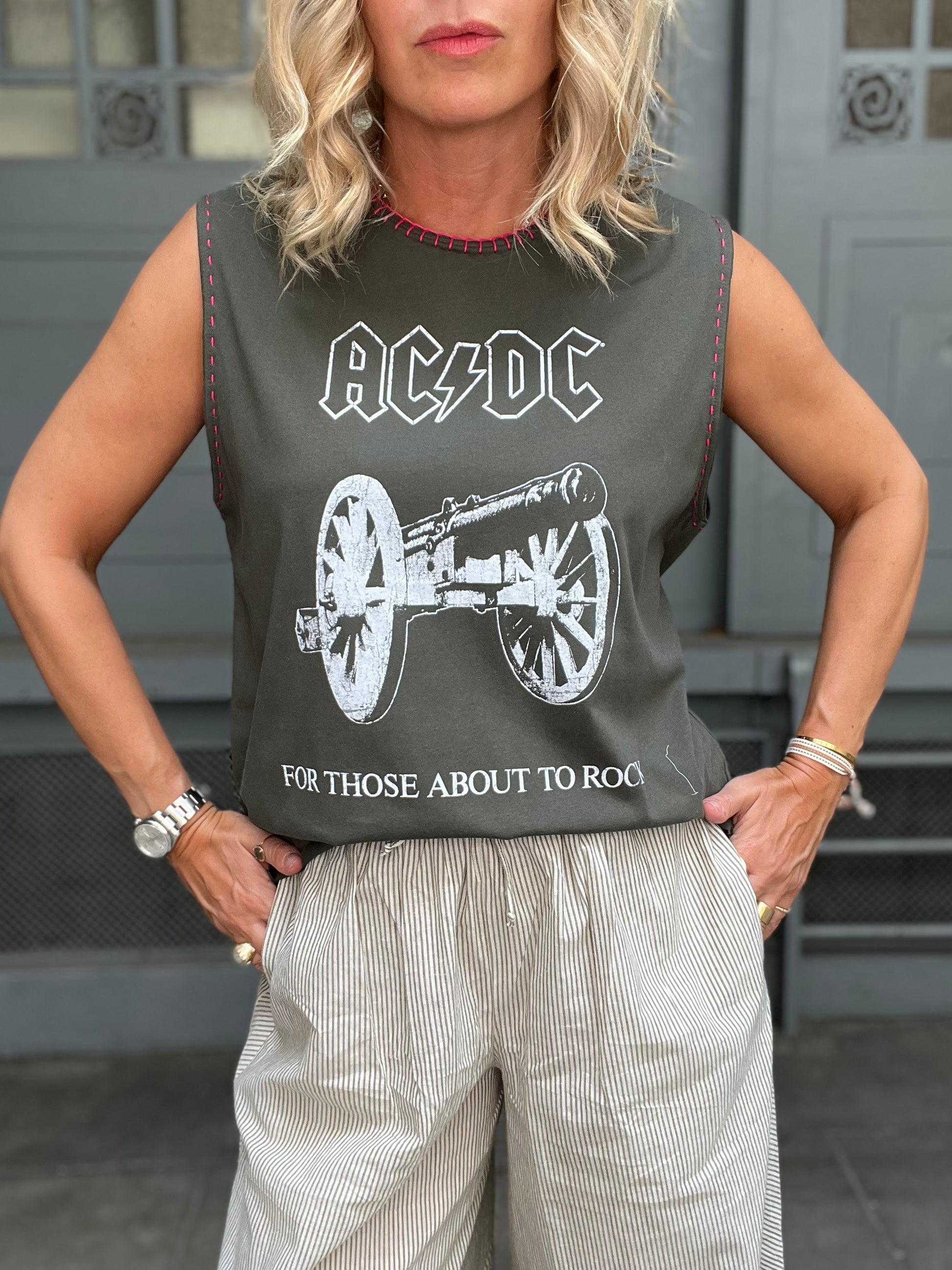 T-shirt en jersey de coton gris vert re-travaillé et brodé à la main à Paris.