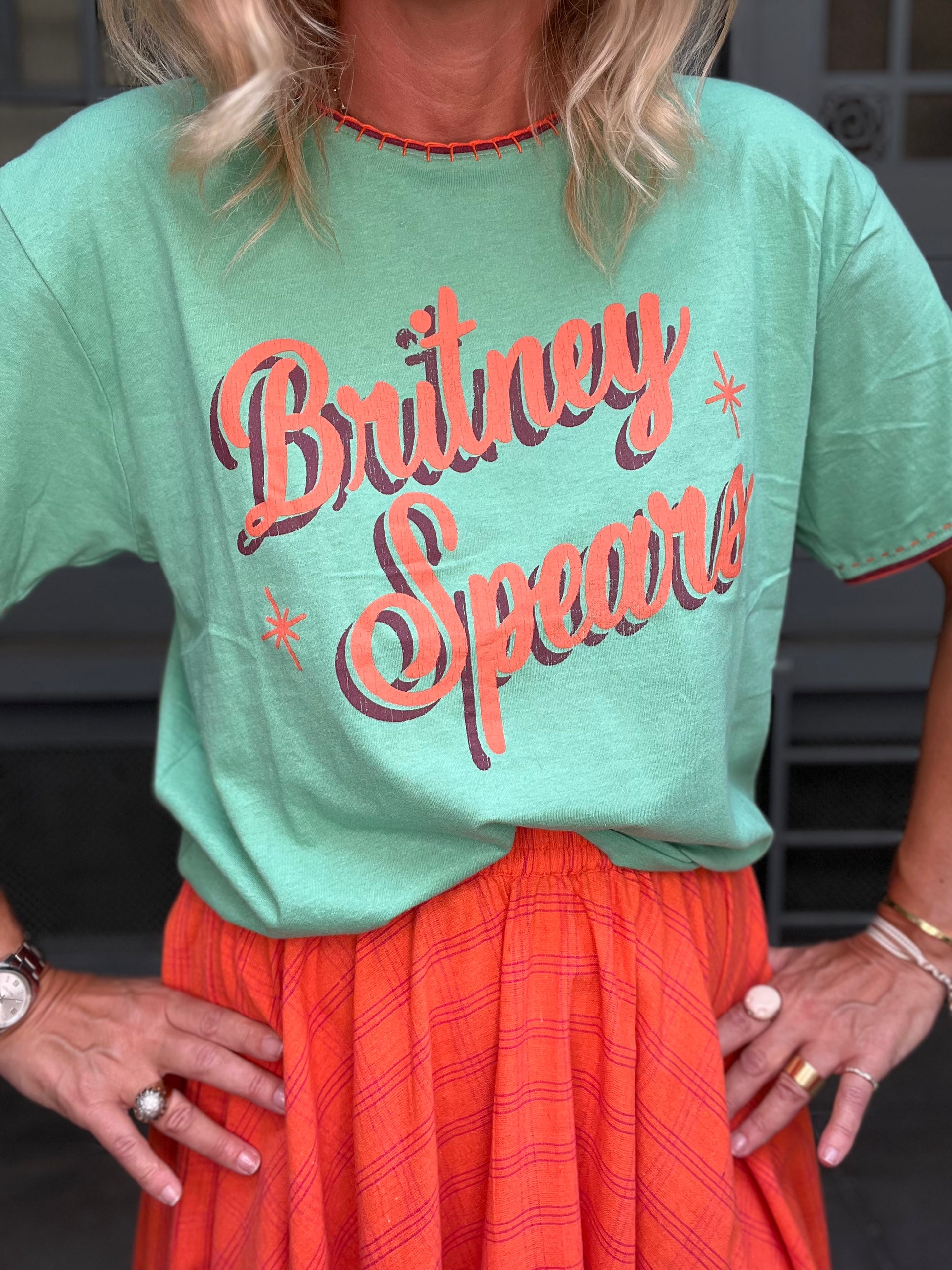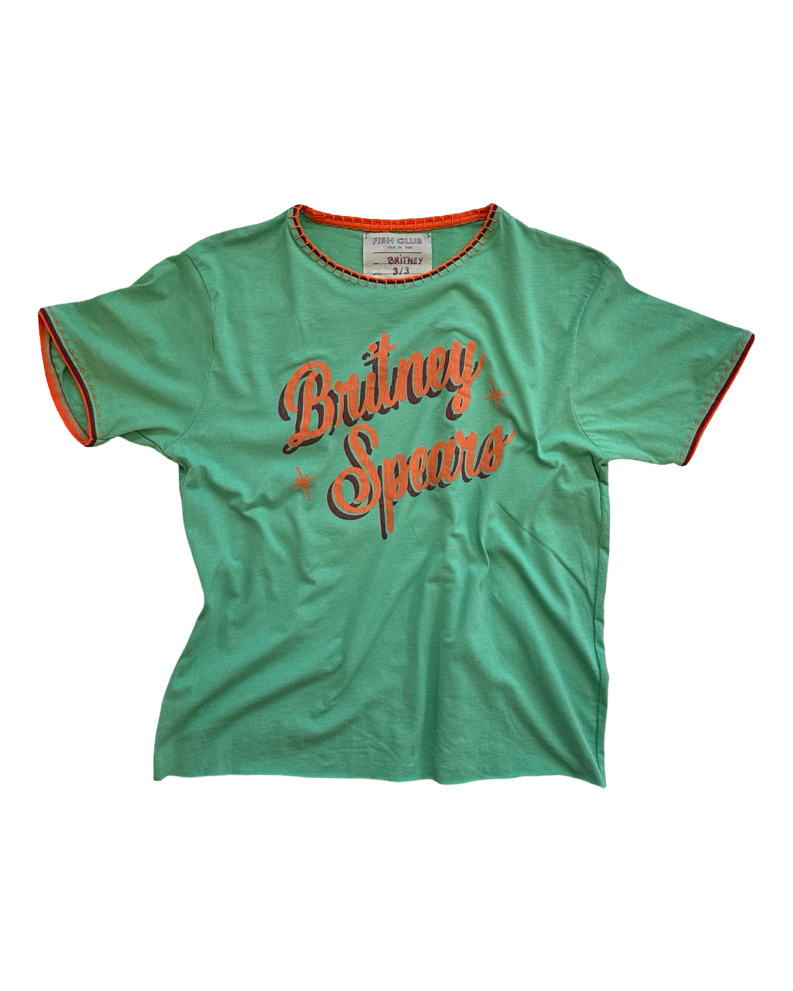 T-shirt en jersey de coton turquoise re-travaillé et brodé à la main à Paris.