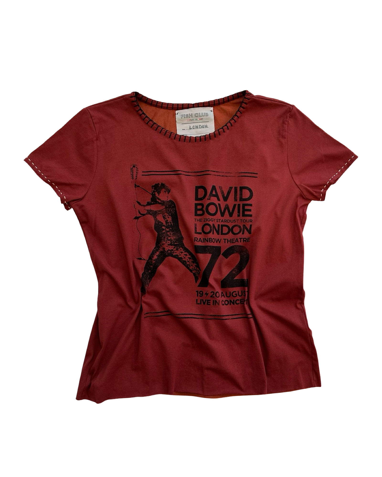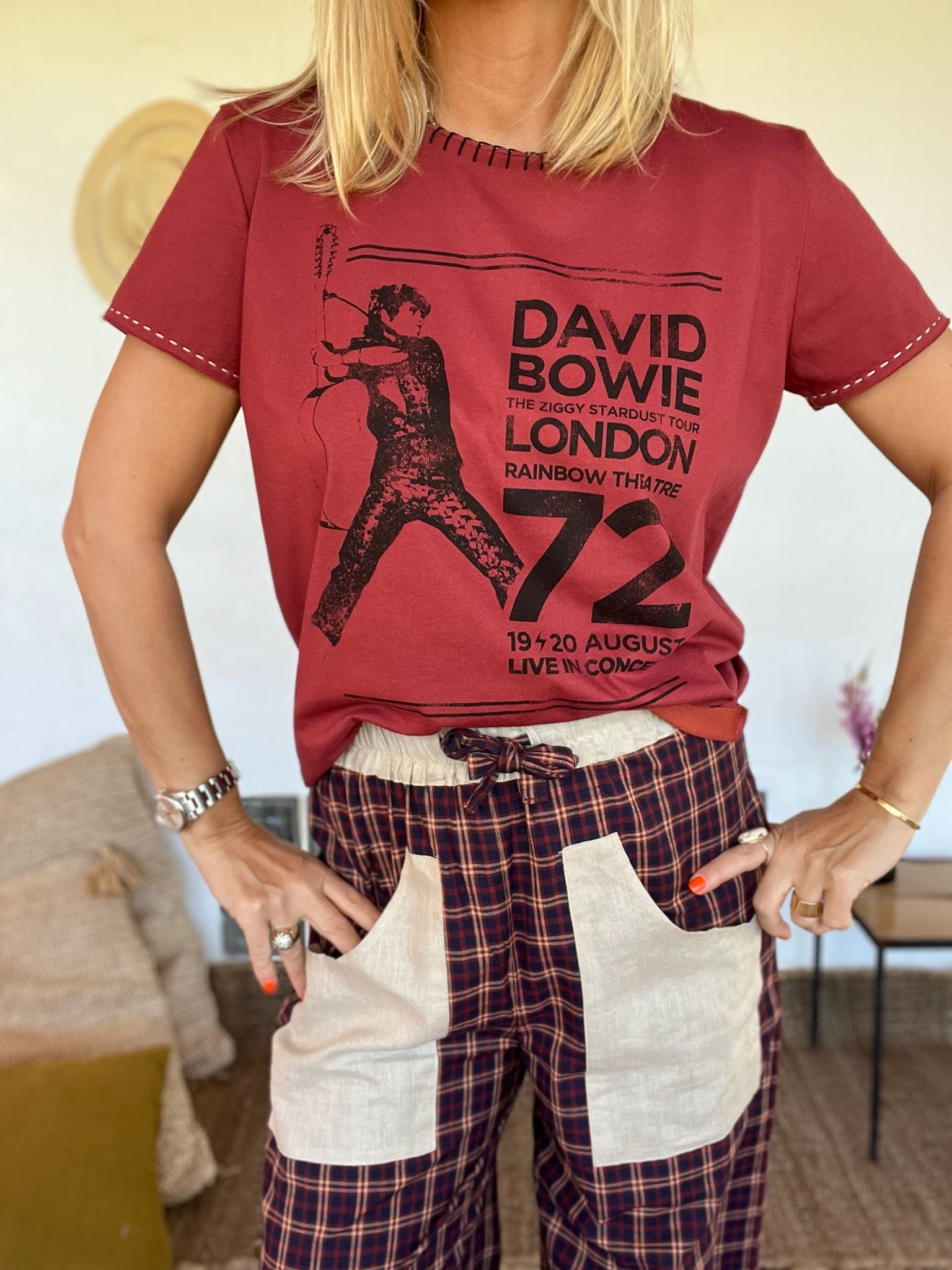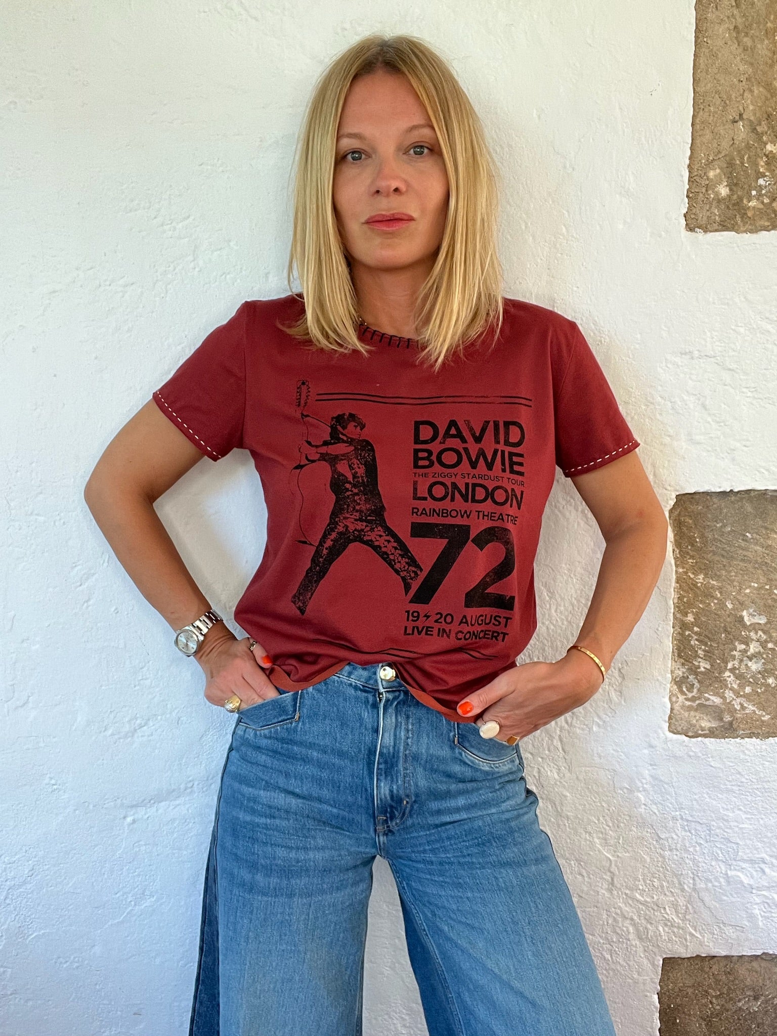 T-shirt en jersey de coton brique re-travaillé et brodé à la main à Paris.
