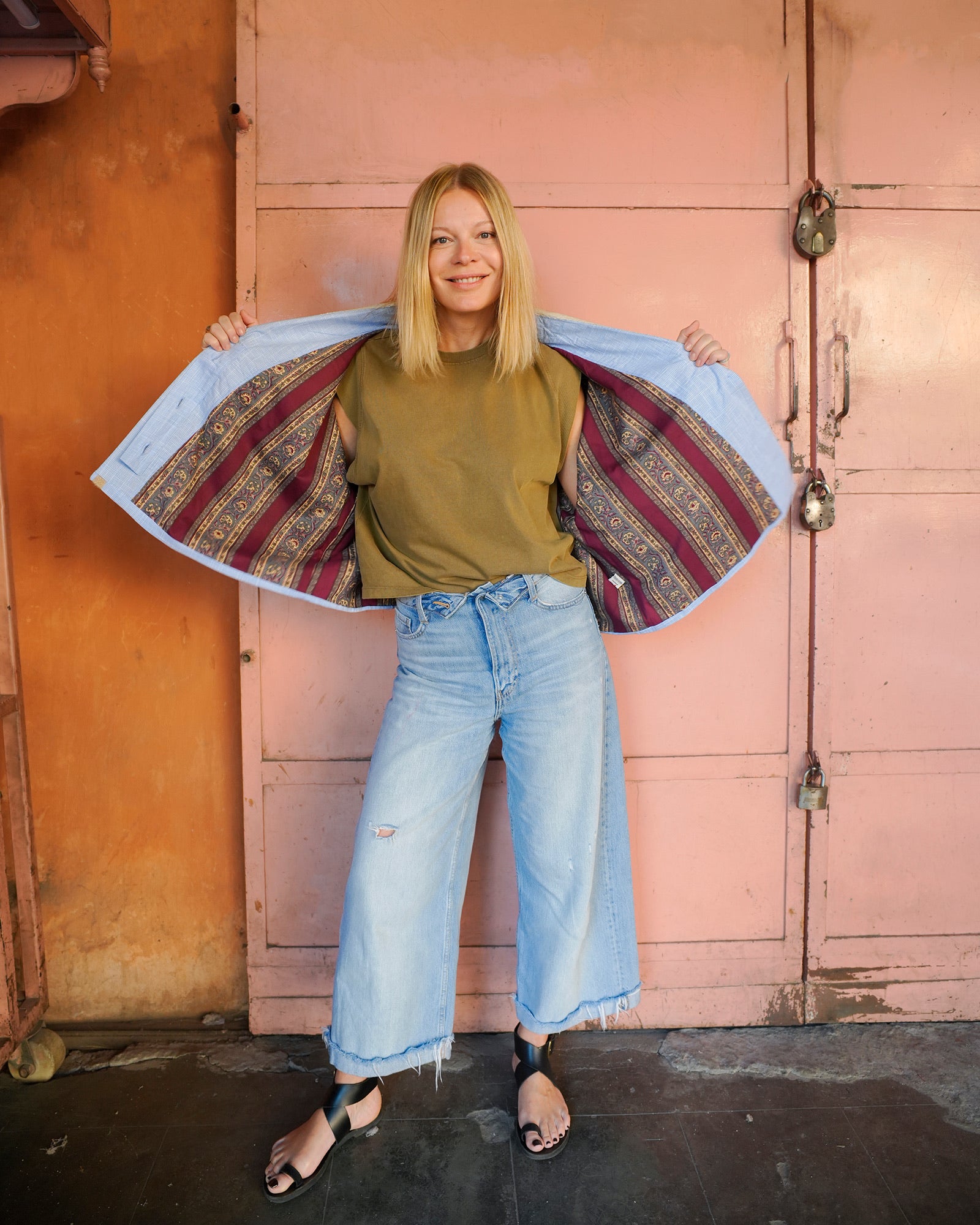 Veste ample en coton avec appliques et broderies faites à la main.